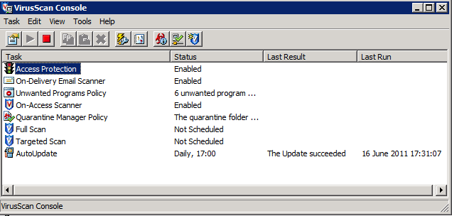 I've been working on a new SCOM 2007 R2 implementation this week for a large customer in Dublin that are using McAfee VirusScan Enterprise + AntiSpyware Enterprise 8.8 as their anti-virus solution and ran into an annoying problem / bug that needed attention to allow SCOM to work the way it should.
