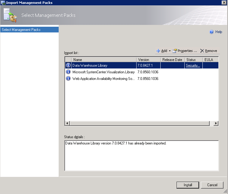If you have previously upgraded to Cumulative Update 1 (UR1), then you will notice that the version of the Data Warehouse Library management pack is the same version number for CU3 and this will not be imported. If you haven't upgraded to CU1, then the import will upgrade all three new management packs at this point.